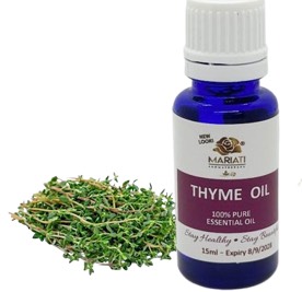 Botanical Name : Thymus vulgarisThyme Oil White is an essential oil made by re-distilling the Red Thyme oil and even though it is widely used in the culinary arts, the medicinal value of this oil is very high. Thyme is considered to be the superstar of the herb garden because one of its important roles is that it is an antidote for poison and prevents diseases brought by plagues.About Thyme: Thyme is indigenous to Southern Europe and is a perennial herb that has been used since the time of the Romans and Greeks who believed not only in its curative and culinary benefits but also attached spiritual significance to the plant. The scientific name is Thymus Vulgaris.Thyme Oil White: Thyme Oil White is a pale yellow essential oil that contains Thymol which is a strong a antiseptic. It has a pleasant aroma and pungent taste and it blends well with other oils.Use of Thyme Oil WhiteMedical Purposes1. The antimicrobial properties of Thyme make it effective in inhibiting the growth of bacteria, fungi and viruses.2. This oil boosts blood circulation, making it easy for nutrients and oxygen to be delivered to the body.3. The oil has anti inflammatory properties that make it effective in the treatment of rheumatism, sore muscles, sciatica, arthritis and gout.4. Thyme Oil metabolizes the body and tones up the circulatory system, nervous system, muscles and skin. 5. It is one of the essential oils that is very beneficial to the heart because it relaxes the arteries and veins and strengthens the cardiac muscles and tones up the heart.6. The expectorant properties in Thyme oil make it an effective remedy in clearing the lungs and throat of phlegm and is commonly used in lozenges and cough drops.7. A very effective mouthwash and widely used in toothpastes because it reduces plaque formation and gingivitis.8. Thyme oil is also effective in the management of Alzheimer’s disease and is useful in the treatment of pulmonary, urinary and intestinal infections.9. Thyme oil has anti depressant properties and is a memory booster and helps to increase concentration.10. Thyme oil helps in weight reduction and also improves digestion while providing relief from excess gas.CosmetologyBecause of its pleasant aroma that blends well with other herbs and oils, Thyme oil is extensively used in preparation of soaps, detergents and perfumes and toothpastes.Culinary Use Widely used as a flavouring agent for sauces, stews, roasts and soups.